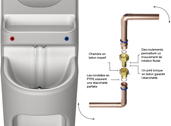 Grâce à son système pivotant breveté en cuivre, la gamme Arc est spécialement conçue pour limiter les risques liés aux agents pathogènes d’origine hydrique, assurant ainsi un environnement sûr et hygiénique