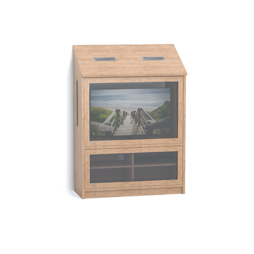 La gamme Harby propose du mobilier robuste et fonctionnel, conçu pour les environnements exigeants, alliant durabilité, sécurité et design chaleureux. Dont cette gamme de mobilier TV avec porte en polycarbonate haute sécurité de 8mm d’épaisseur