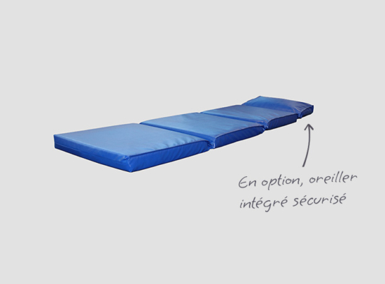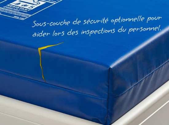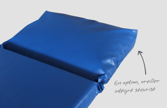 Contrairement aux oreillers amovibles, l’oreiller intégré sécurisé est solidement fixé, limitant les utilisations à risque. À l’intérieur, le produit est fabriqué avec une mousse CMHR (haute résilience modifiée pour la combustion) ignifuge, offrant un équilibre entre confort, durabilité et sécurité renforcée pour les utilisateurs comme pour le personnel.
